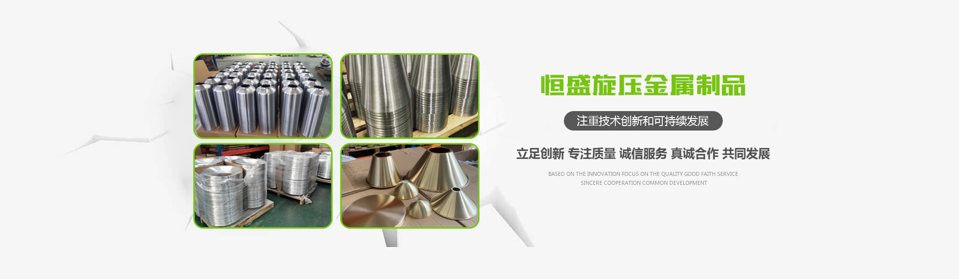 恒盛旋壓始終注重技術(shù)創(chuàng)新和可持續(xù)發(fā)展常州市恒盛旋壓金屬制品有限公司是一家專業(yè)生產(chǎn)旋壓件、沖壓件、拉升件的公司。公司具有強(qiáng)有力研發(fā)、生產(chǎn)、銷售的精英團(tuán)隊(duì)。恒盛旋壓是一個(gè)具有創(chuàng)新科技型企業(yè),創(chuàng)新能力是恒盛旋壓的核心競(jìng)爭(zhēng)力,創(chuàng)新使恒盛旋壓實(shí)現(xiàn)了跨越式的發(fā)展,恒盛旋壓在企業(yè)內(nèi)部完善了創(chuàng)新機(jī)制,形成了獨(dú)特的創(chuàng)新文化。公司擁有著國(guó)內(nèi)外領(lǐng)先的數(shù)控旋壓工藝技術(shù),多年來長(zhǎng)期和國(guó)外多國(guó)進(jìn)行數(shù)控旋壓技術(shù)交流與合作。公司堅(jiān)定不移的立足科技創(chuàng)新,潛心產(chǎn)品技術(shù)研發(fā),注重產(chǎn)品品質(zhì)和誠(chéng)信服務(wù),匯集了一批專業(yè)技術(shù)領(lǐng)域